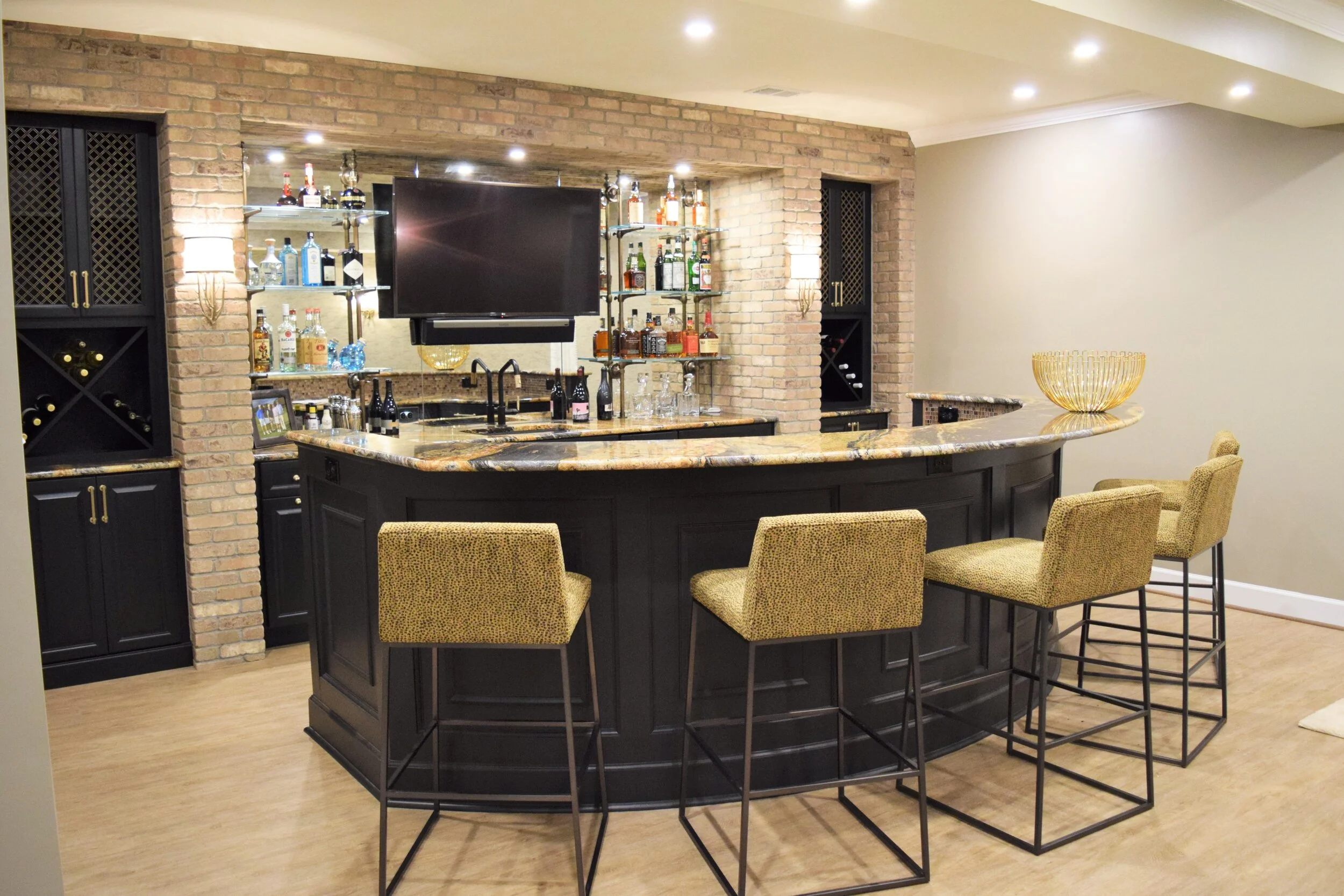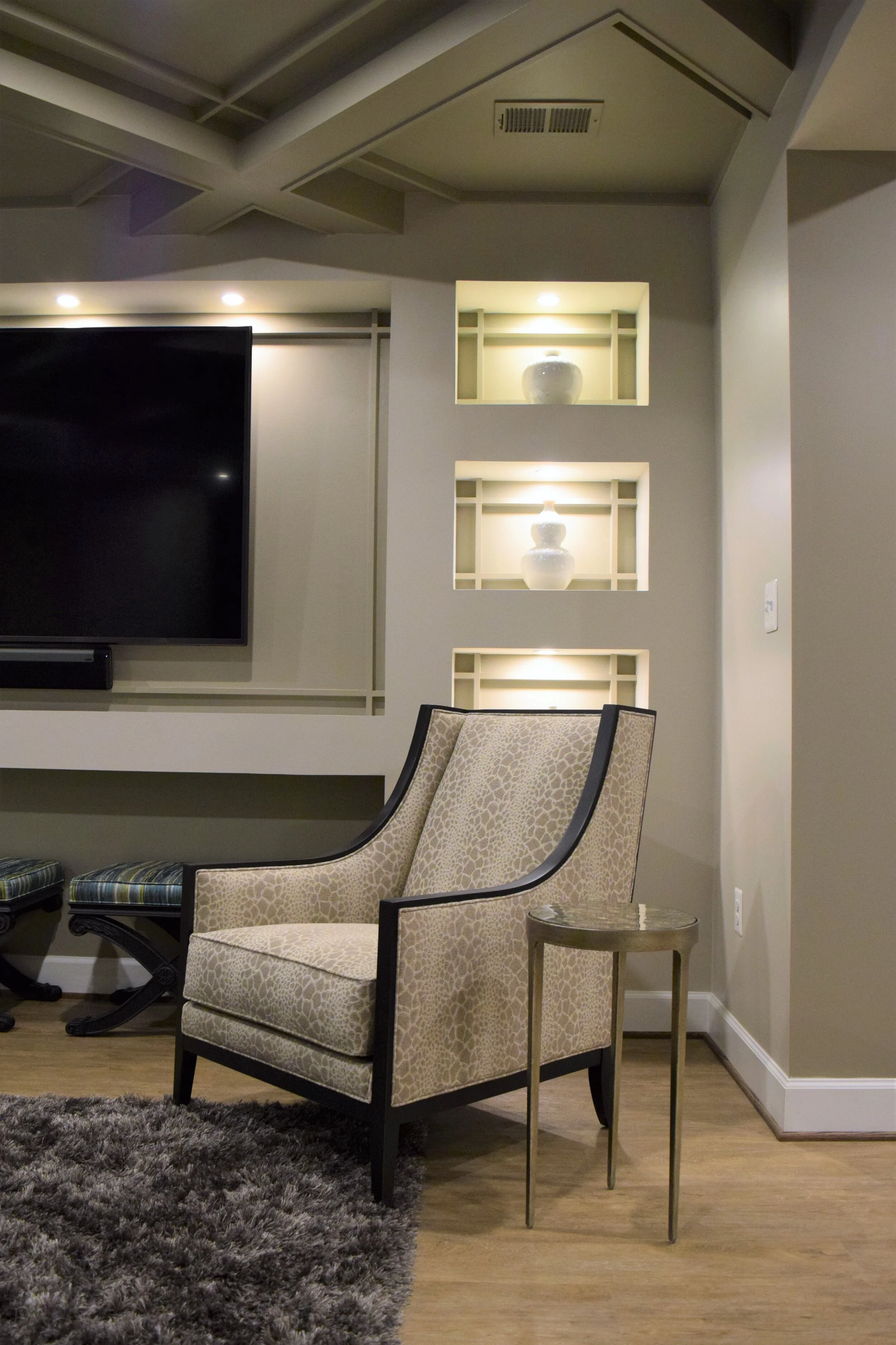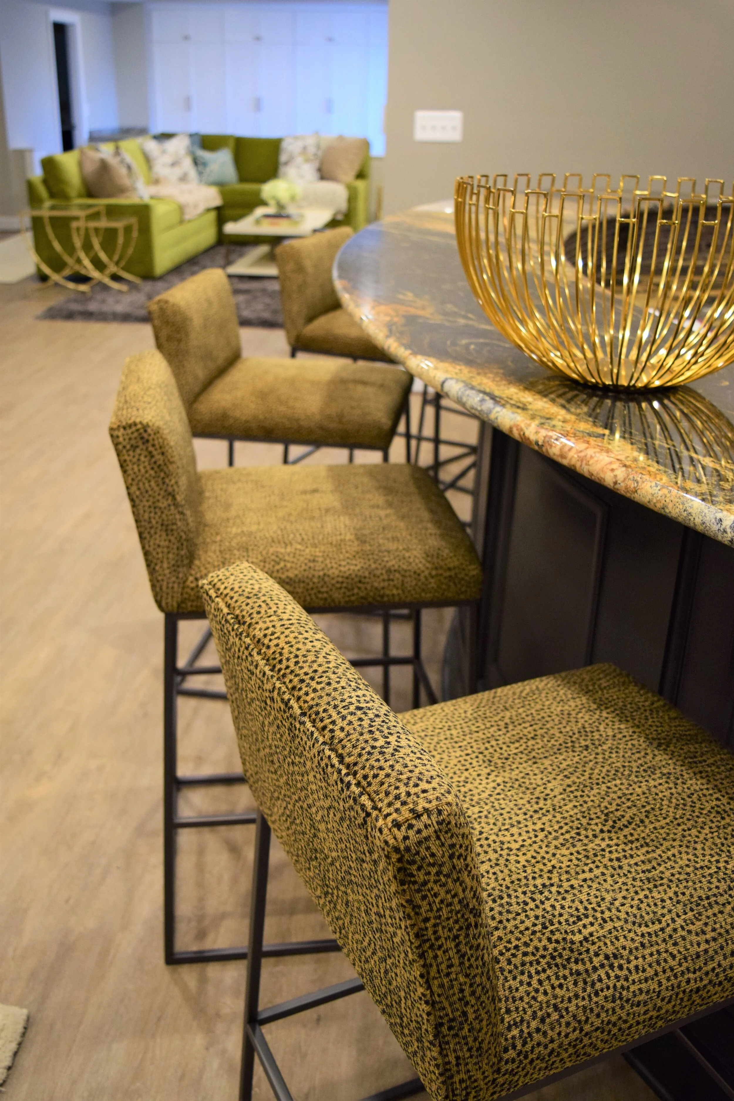 When my long-time clients were ready to start their full basement remodel project, they came to me with a clear vision of what the finished design would look like. Rich textures, dramatic colors, and luxe finishes create a modern yet elegant entertaining space.